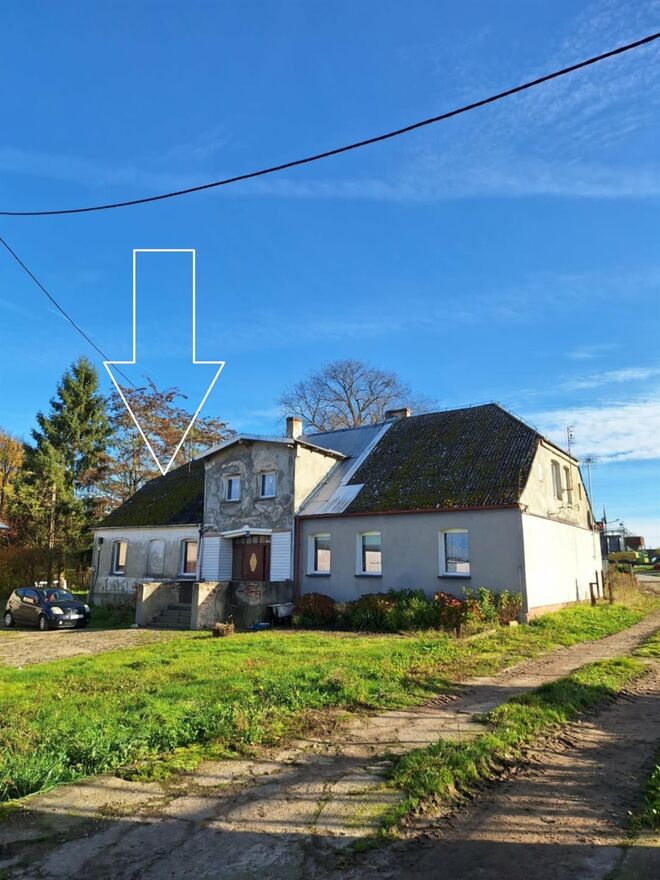 92 metry powierzchni w budynku z trzema mieszkaniami. Parter to Ganek , Łazienka, Pokój , Kuchnia ( w tej chwili rozebrana jedna ściana łącząca kuchnię z pokojem celem powiększenia salonu ). Piętro - duży pokój plus część strychu. Wejście niezależne, własne, z boku budynku. Tereny rolnicze, wiejskie.
