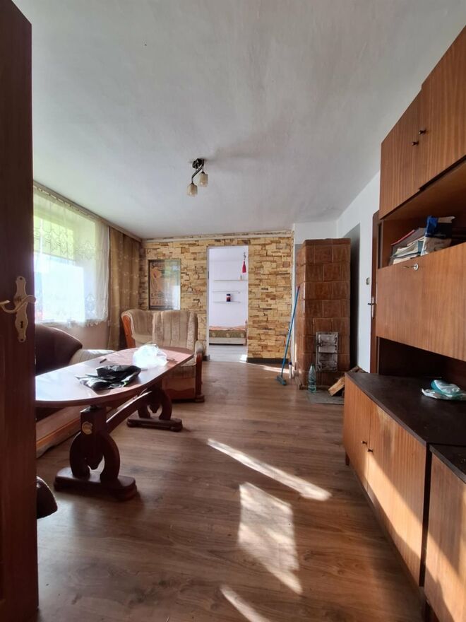 Przepiękne tereny leśne. Pola oraz łąki. W pobliżu starego Folwarku. Nieruchomość to część zabudowy bliźniaczej z własnym , niezależnym wejściem. Około 64m2 powierzchni , dwa pokoje , łazienka, przedpokój oraz ogromny, wysoki strych. Dodatkowo komórki lokatorskie za domem.